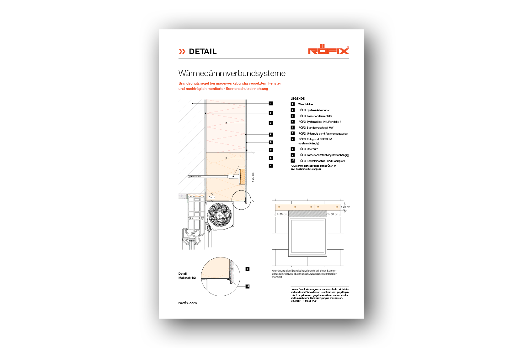 Zum Schutz vor sommerlicher Überhitzung sind am Markt unterschiedliche Beschattungssysteme erhältlich. Um den ästhetischen Ansprüchen gerecht zu werden, können die unterschiedlichen Systeme in ein WDVS integriert werden.